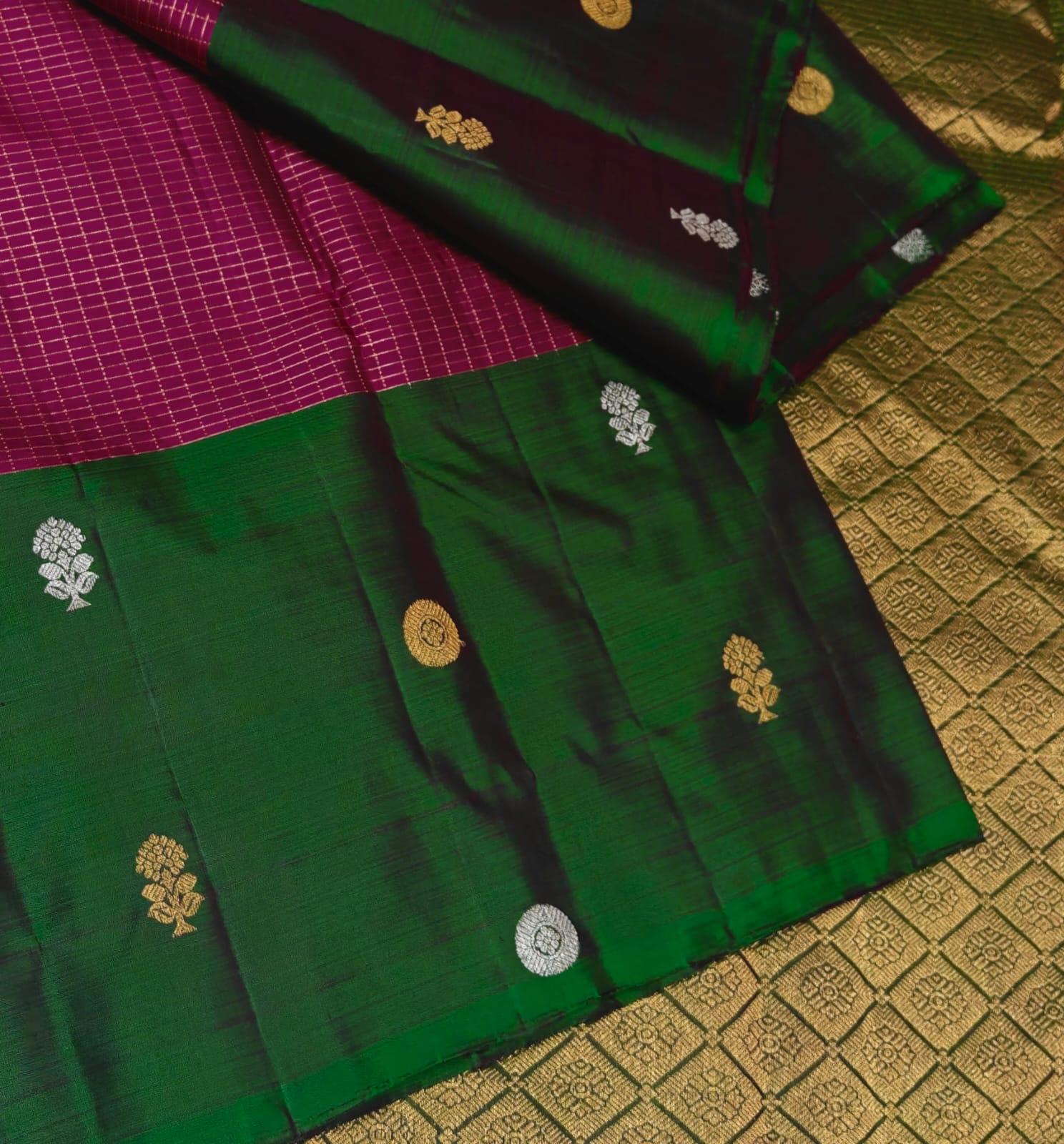 Pure Kanchipuram saree – Magenta-green